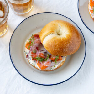 「基本のもっちりベーグル&スモークサーモンのベーグルサンド」